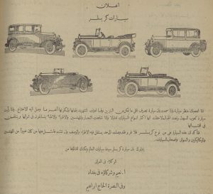 كثير من الناس يسعدون عندما يقع نظرهم على وثيقة قديمة أو إعلان ينقل لهم صورة زمن يعتقدونه زمنا جميلا، ويتمنون لو أنهم عاشوا فيه أو لو أن واقعهم كماضيهم.. وأنا أقلب في أعداد جريدة التقدم العراقية والتي تعود إلى العام 1928 أي قبل تسعين سنة بالضبط، لفت نظري إعلان تكرر في عشرات الإعداد لسيارة كريسلر بخمسة فئات توفرت لدى وكيل الشركة في العراق آنذاك، وقد صيغت الإعلانات بطريقة ترغب المستهلك فهي تتحدث عن سيارة لا تستهلك الكثير من الوقود، وأنها سيارة الأغنياء وأصحاب المهن الرفيعة في البلد كما يقول الإعلان، والحقيقة أن إعلانات السيارات في الصحف هي هي لم تتغير بتغير السنين، ربما تغير نوع الصورة فأصحبت أكثر دقة وبالألوان والوصف أصبح مختصرا، ومن يعلن هو صاحب وكالة السيارات وهذا حاصل في كل دول العالم في الماضي والحاضر.